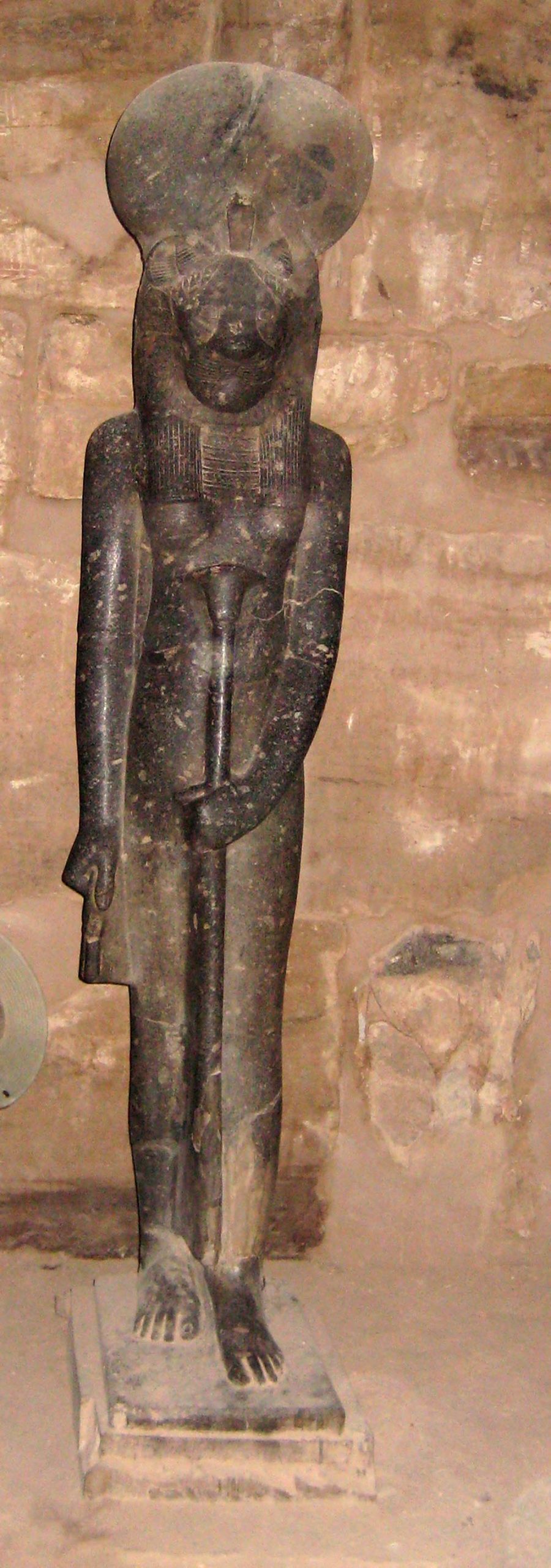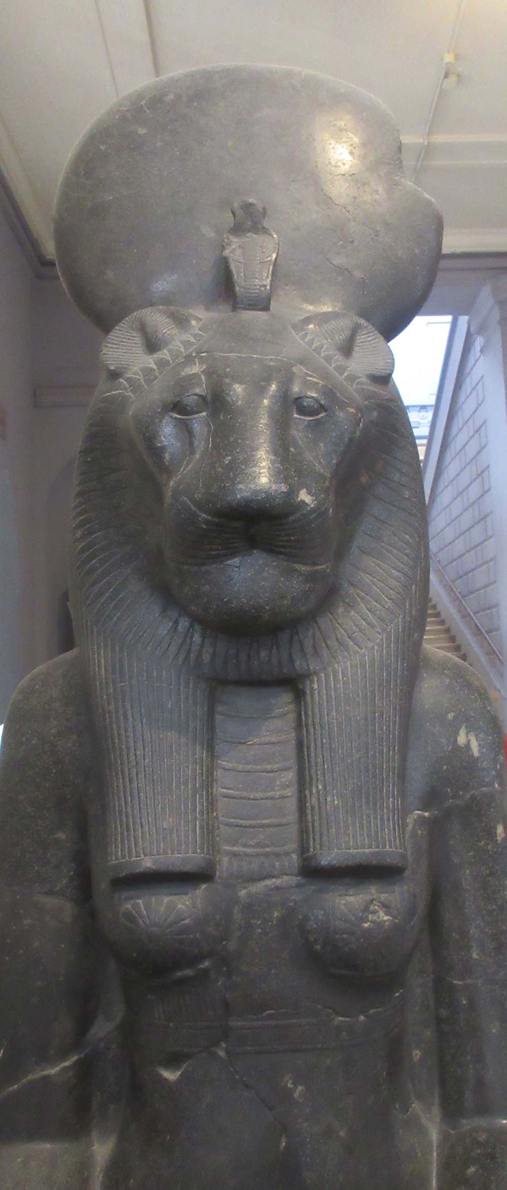 Sekhmet is also a solar deity, sometimes called the daughter of Ra and often associated with the goddesses Hathor and Bast. She bears the Solar disk and the uraeus which associates her with Wadjet and royalty. With these associations she can be construed as being a divine arbiter of Ma’at (“justice” or “order”) in the Judgment Hall of Osiris, associating her with the Wadjet (later the Eye of Ra), and connecting her with Tefnut as well.